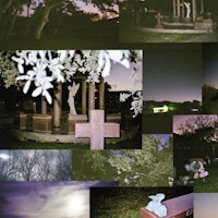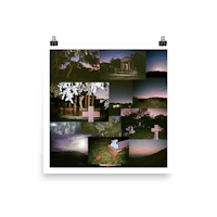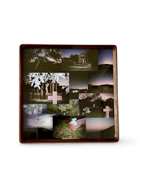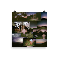 Film collage of a cemetery & various mountain scenery