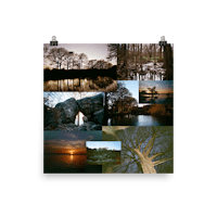 Film collage of various nature shots (ocean, lakes, trees)