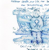 Colored pencil drawing overlapping handwritten scripture (2 versions)